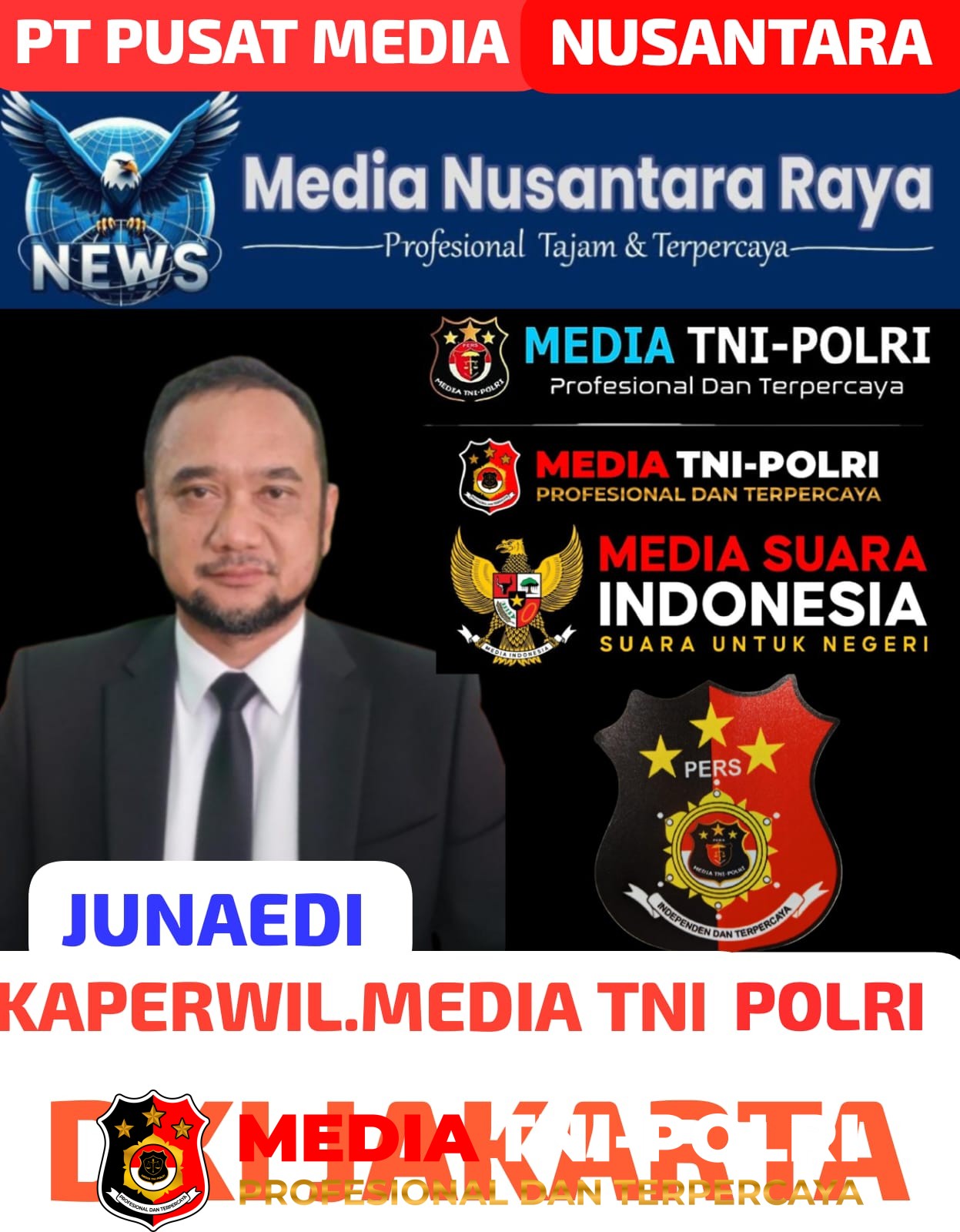 Junaedi, Kaperwil Media TNI-POLRI Jakarta Raya, menyampaikan, “Terima kasih kepada Ketua Umum Media TNI-POLRI, Bapak Tenor Amin Sutanto, yang telah memberikan kepercayaan besar kepada saya untuk mengemban jabatan Kaperwil Jakarta Raya ini. Saya akan menjalankan amanat ini sebaik-baiknya. Semoga dengan adanya Kantor Kaperwil Jakarta Raya ini, Media TNI-POLRI khususnya di wilayah Jakarta berkembang semakin maju dan dikenal masyarakat.”(Ferry)