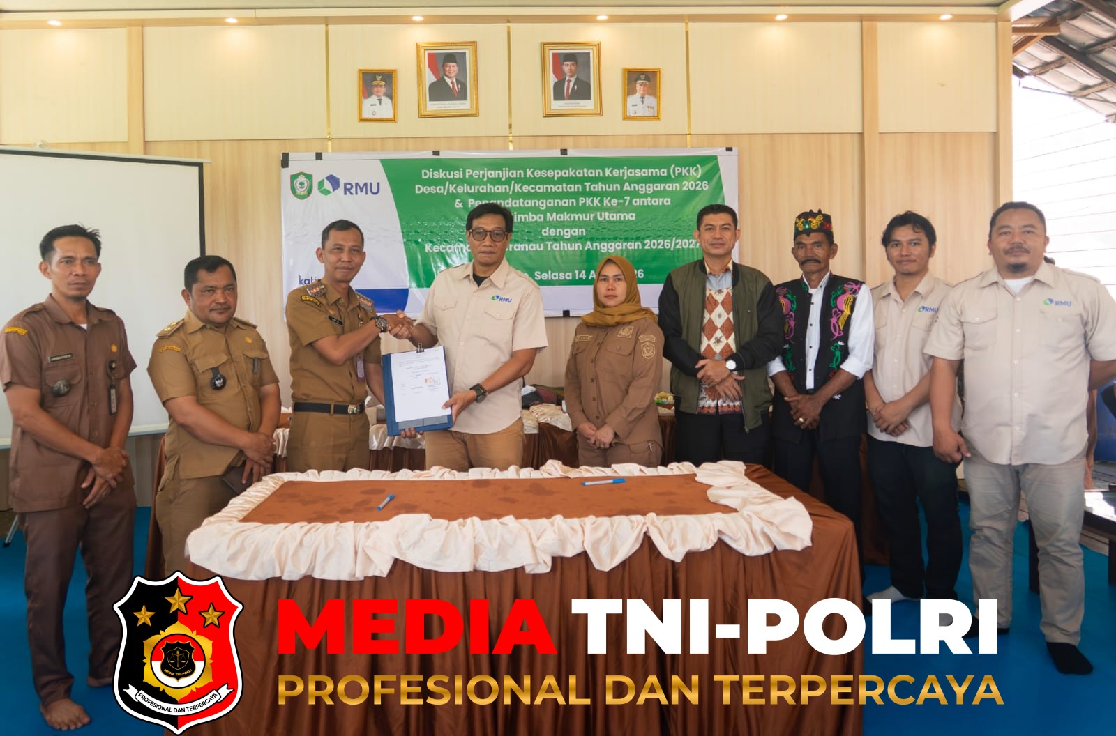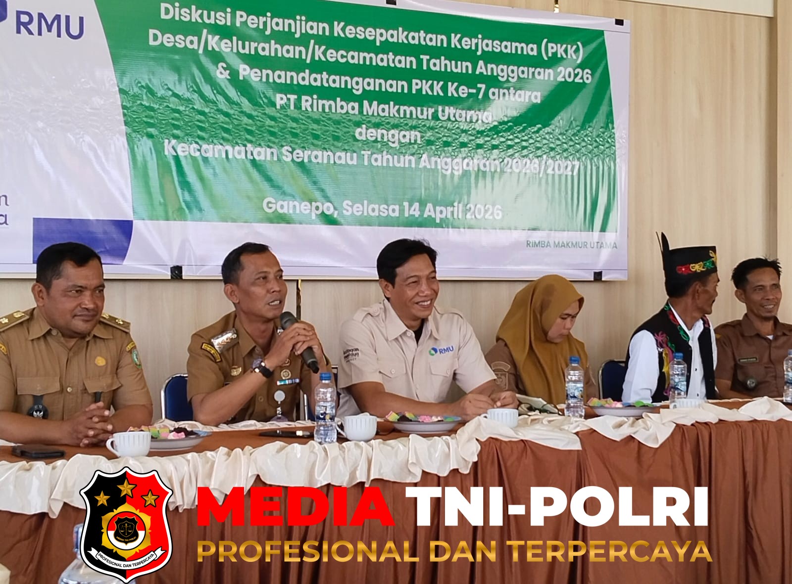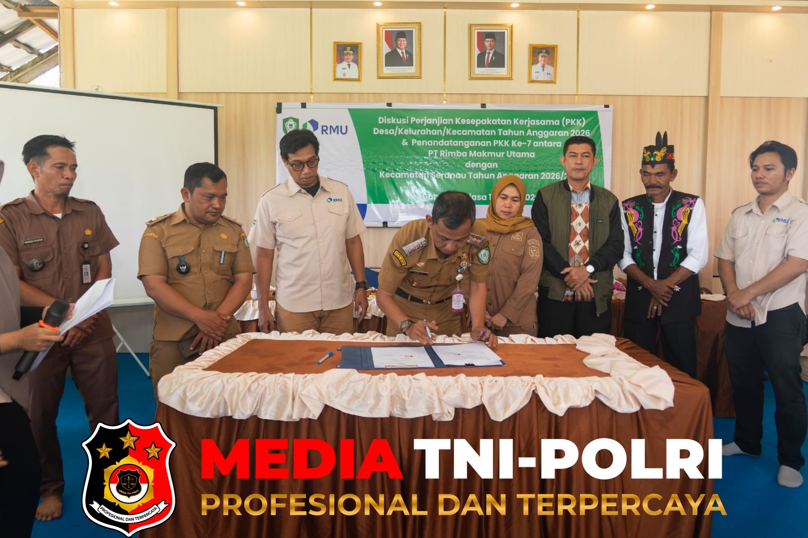 KOTAWARINGIN TIMUR, MEDIATNI-POLRI.ID//Pemerintah Kecamatan Seranau, Kabupaten Kotawaringin Timur (Kotim), melaksanakan penandatanganan Perjanjian Kesepakatan Kerja Sama (MOU/PKK) bersama PT Rimba Makmur Utama (RMU), Selasa (14/4/2026), di Aula Desa Ganepo.